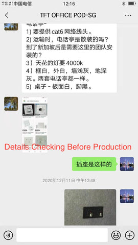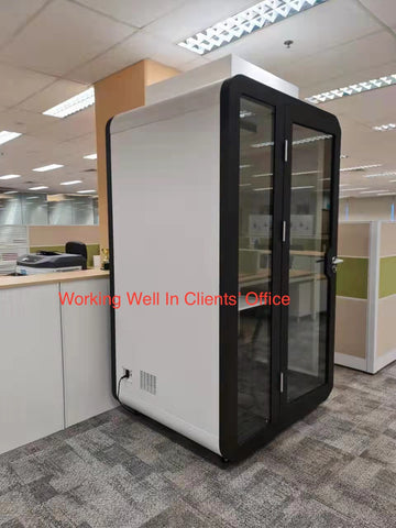 We developed this office pod product in 2020, and then one of our earliest customers, as a review, this customer is in Singapore, He mentioned that there are many professional suggestions. Among them, it must be installed in the business network cable.Then our ceiling lights are required to use the brightness of 4000k.And Soundproof will reach standard NIC Rating ASTM E90 Standard Test Method for Laboratory Measurement of Airborne Sound Transmission Loss of Building Partitions and Elements